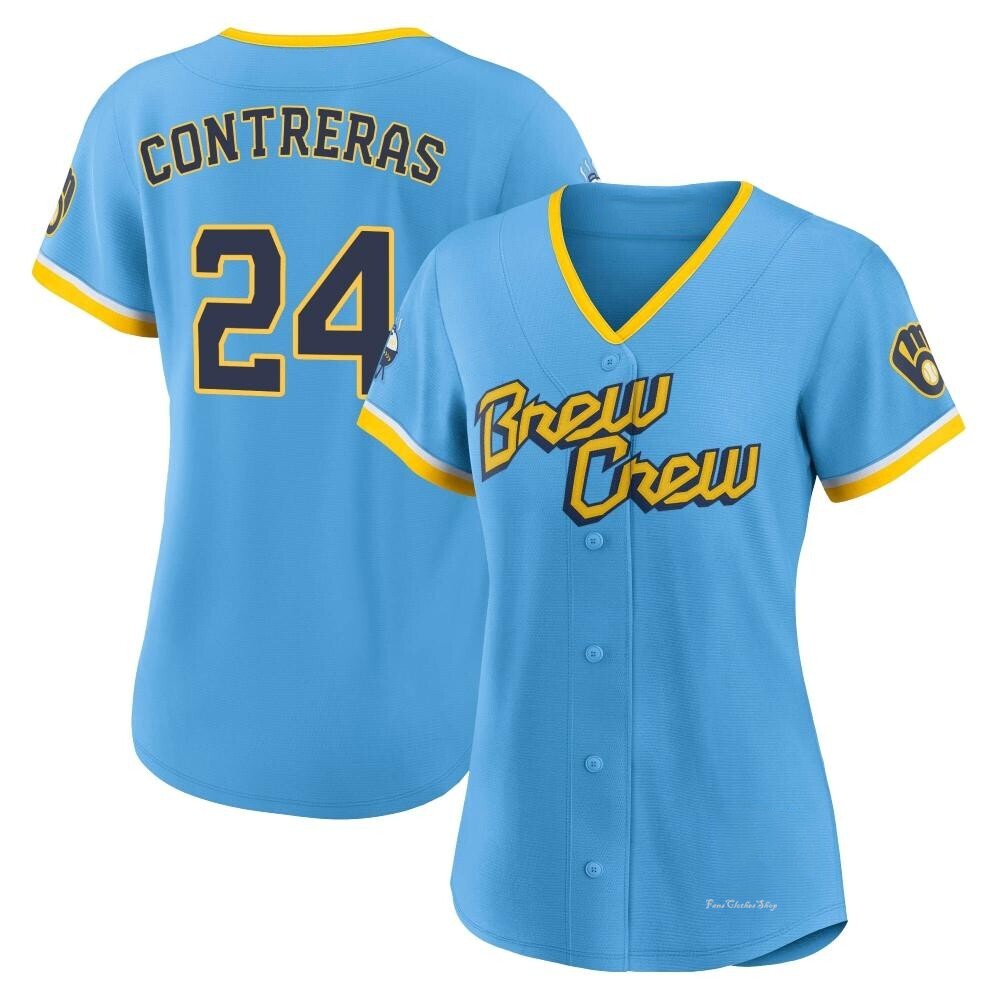 You're the type of Milwaukee Brewers fan who counts down the minutes until the first pitch. When your squad finally hits the field, show your support all game long with this Women's William Contreras Milwaukee Brewers Authentic Blue Powder 2022 City Connect Jersey.